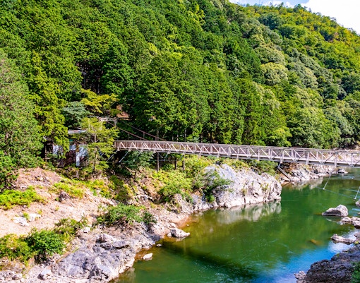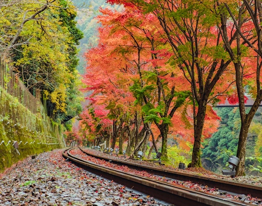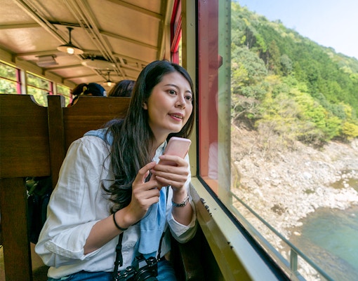 - Panorama natural: Você tem vistas incomparáveis das ravinas do rio Hozugawa e das densas e pitorescas florestas de Arashiyama. Essa não é apenas uma rota cênica; é um espetáculo visual, especialmente durante a florada das cerejeiras e as estações de outono.